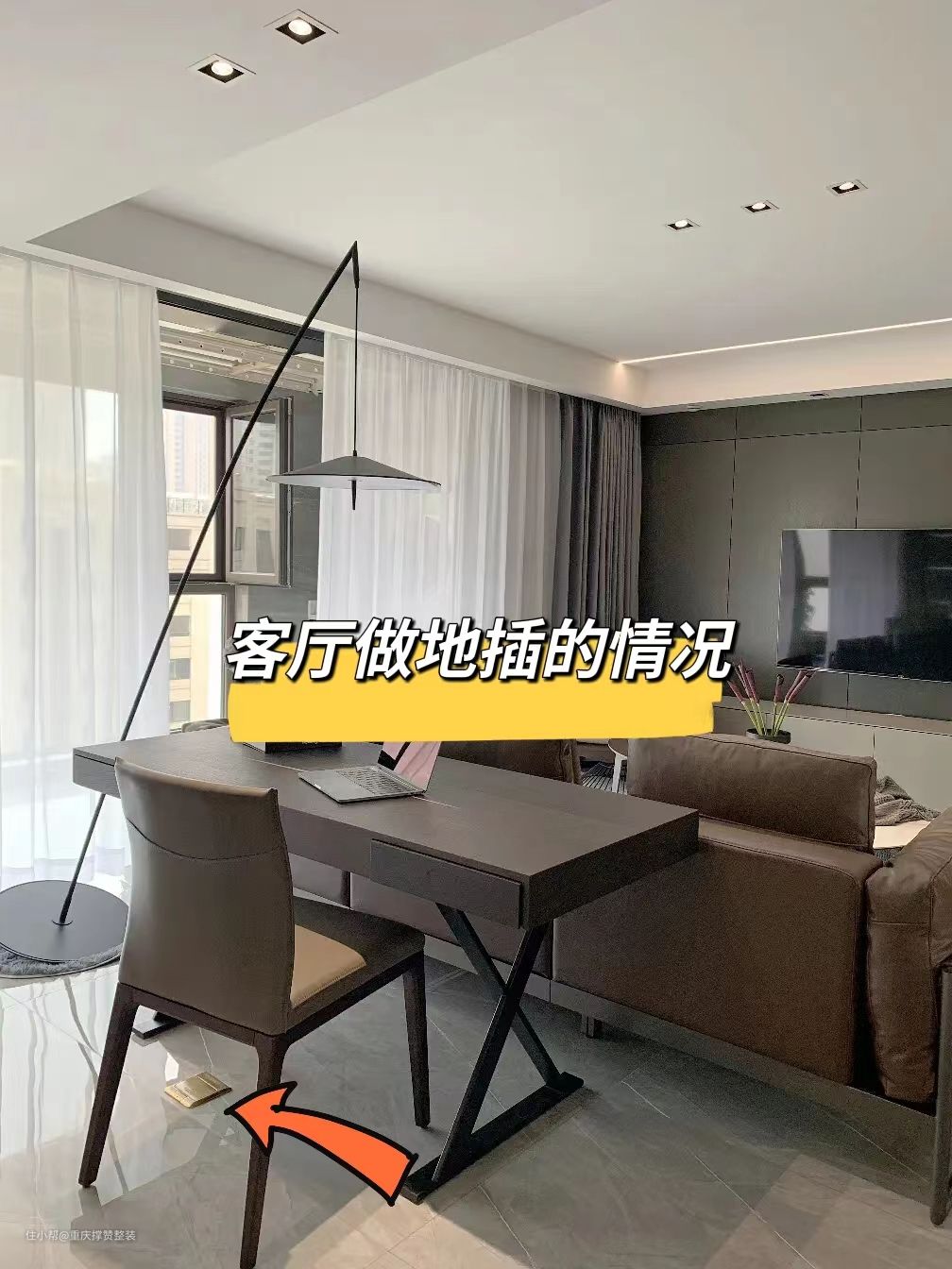 另外还有一种情况需要做地插,就是在横厅的户型沙发居中的情况下(背后不靠墙壁),周围也可以做个地插,旁边放个边几,充电也不会离墙壁太远。