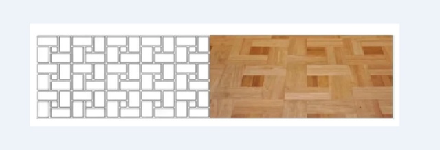 田字拼法拼装工艺简单,材料的损耗率也极低,整体铺出来,有点像编织出来的味道,与旧时人们编织出来的竹篮花纹有些像,因此也叫复古拼法。