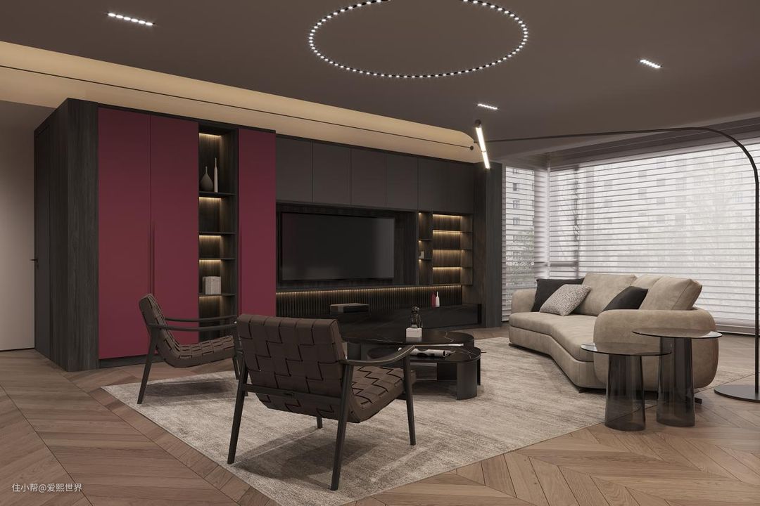 微醺都市以勃艮第红为主色调,与深沉的烟熏橡木花色互搭,空间充盈着复古美学魅力,如同一杯香醇的红葡萄酒一般回味无穷。