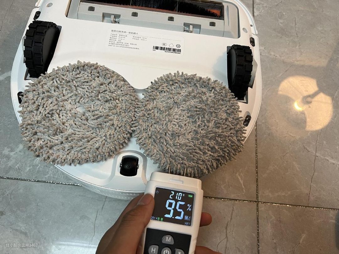 清理的时候可以看到,W10pro在进行过一次工作之后,几乎可以去掉大部分的干污渍,这说明W10pro搭载的双圆盘旋转增压擦地系统带来的拖地效果是符合旗舰扫地机器人的定位的。