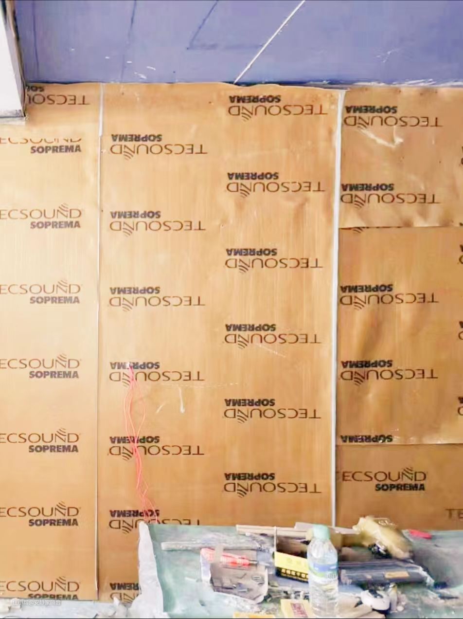 电梯和主卧室共墙,运用最先进悬浮减振隔声工艺,墙面隔音完成厚度10厘米。主材仅用「西班牙texsa原装进口3.5mm环保隔音毡」 和 「定制60k容重无甲醛隔音棉」。我们提供隔音材料和方案、全程安装指导,小姐姐本地找的木工师傅,按我们的步骤做的。