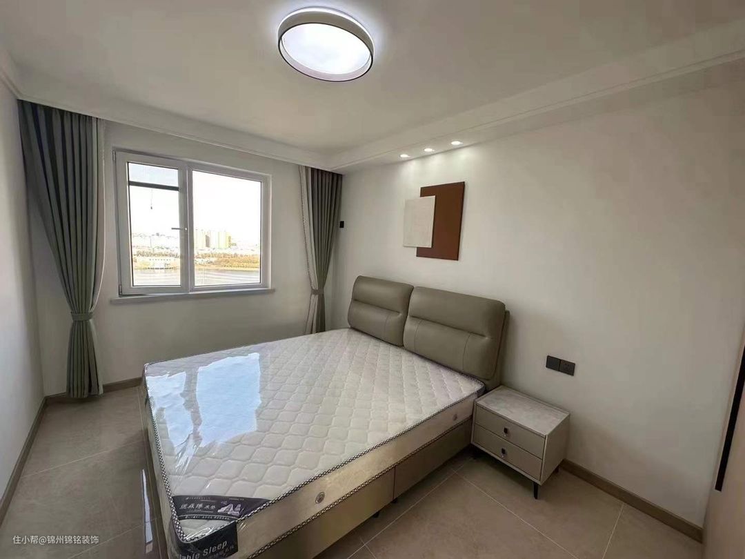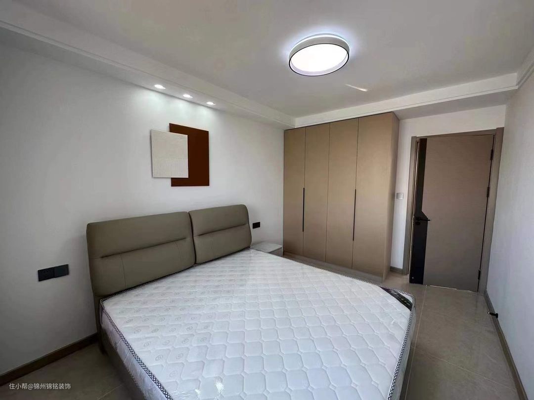 卧室延续客厅主体风格,瓷砖是和客厅一致,没有加过门石、波导线,整体不会觉得太冷清,让空间更加通透。1.8m*2m双人床,圆弧转角,减少磕碰伤害。定制衣柜通顶安装,1:1比例搭配,让拉手与衣柜更加美观协调,打造属于自己的家居空间。