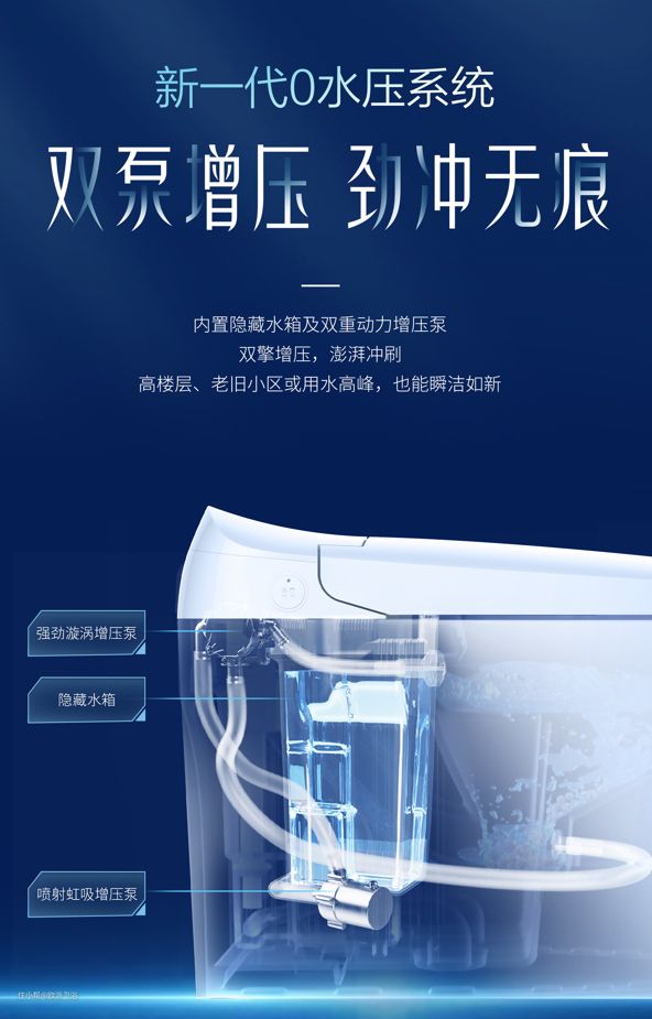 住在高峰层或者是老旧小区的朋友一定深有体会,每次一遇到用水高峰期,马桶冲力就不行,经常出现冲水冲不干净的情况。智能马桶不管多智能,核心能力还是冲水能力,如果冲水效果不好的话,真的很影响使用体验。