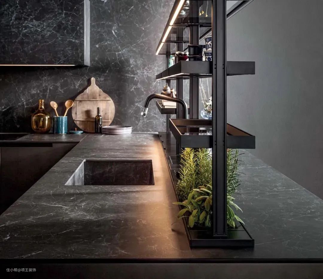 因此厨房台面使用岩板可以很好的解决厨房台面常见的这些问题,而且岩板模仿了许多大理石的纹理,在颜值方面也是非常不错的。