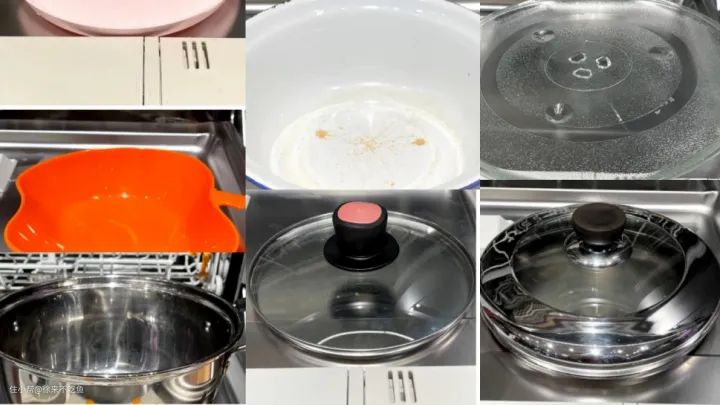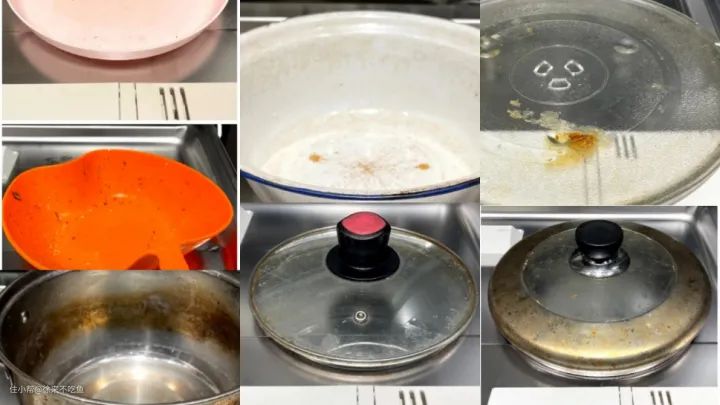 可以看到,整个清洗效果还是不错的,对比原本油渍布满的餐具,不管是塑料碟盘,还是用了很久的不锈钢锅,以及厚厚油脂的玻璃锅盖,都能清洗的干干净净,恢复初原本的模样。