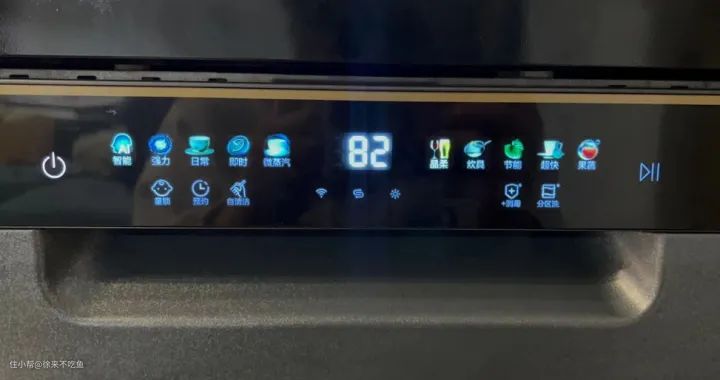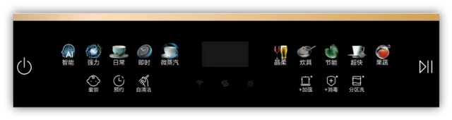 这款洗碗机是前置操作面板,LED触屏操作的设计,操作界面也比较简洁,上层为主程序,下层为附加程序。同时在图标设计上,使用了彩色图标,视觉上让人更加舒服,也便于理解具体功能。