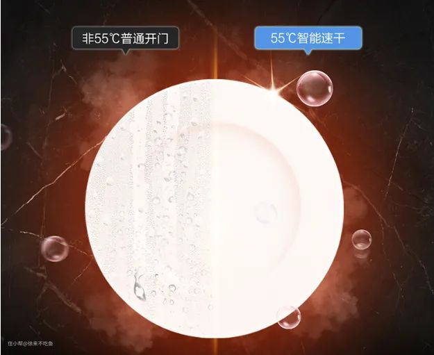 海尔W30在温度与湿度达到平衡点的55℃,此时开门可以将即将凝结成水珠的蒸汽快速排出,从而可以加快干燥效果。