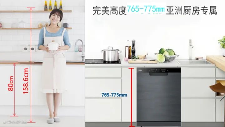 亚式黄金高度,中国绝大多数厨房都能装得下,底脚有10mm可调,不必担心与橱柜高度不和。