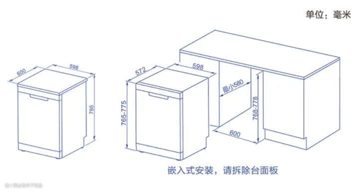 外观方面:海尔W30洗碗机采用了亚式尺寸,符合中国厨房的规格,独嵌两用更加方便。因此在选购的时候注意尺寸大小,以及是否可以独嵌两用。