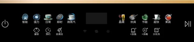 海尔W30洗碗机在模式选择上面分为10大洗涤程序(上面一排)+6大附加功能(下面一排)。