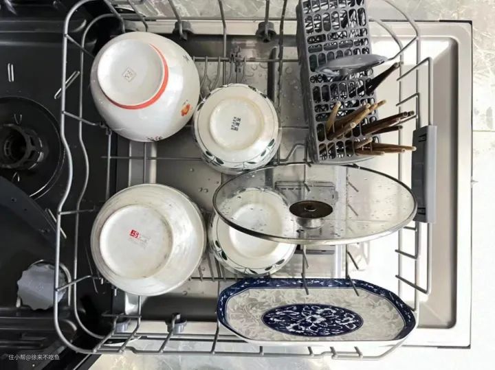 很明显,很干净。在日常的模式情况下,咱们的清洁效果也是很不错的。我摸着整个碗身,也没有特别的滑溜的感觉,油脂清洗的很干净。