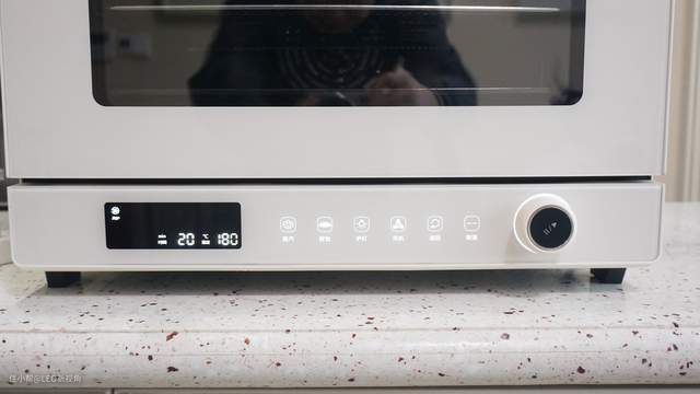 操控设计,两款烤箱是一样的,左边的LED显示屏,中间是触摸按键+旋钮,可以通过旋钮来选择温度、时间等等功能设置,而且所有的设置都可以在左侧的显示屏上显示,让用户一目了然,上手好物障碍。