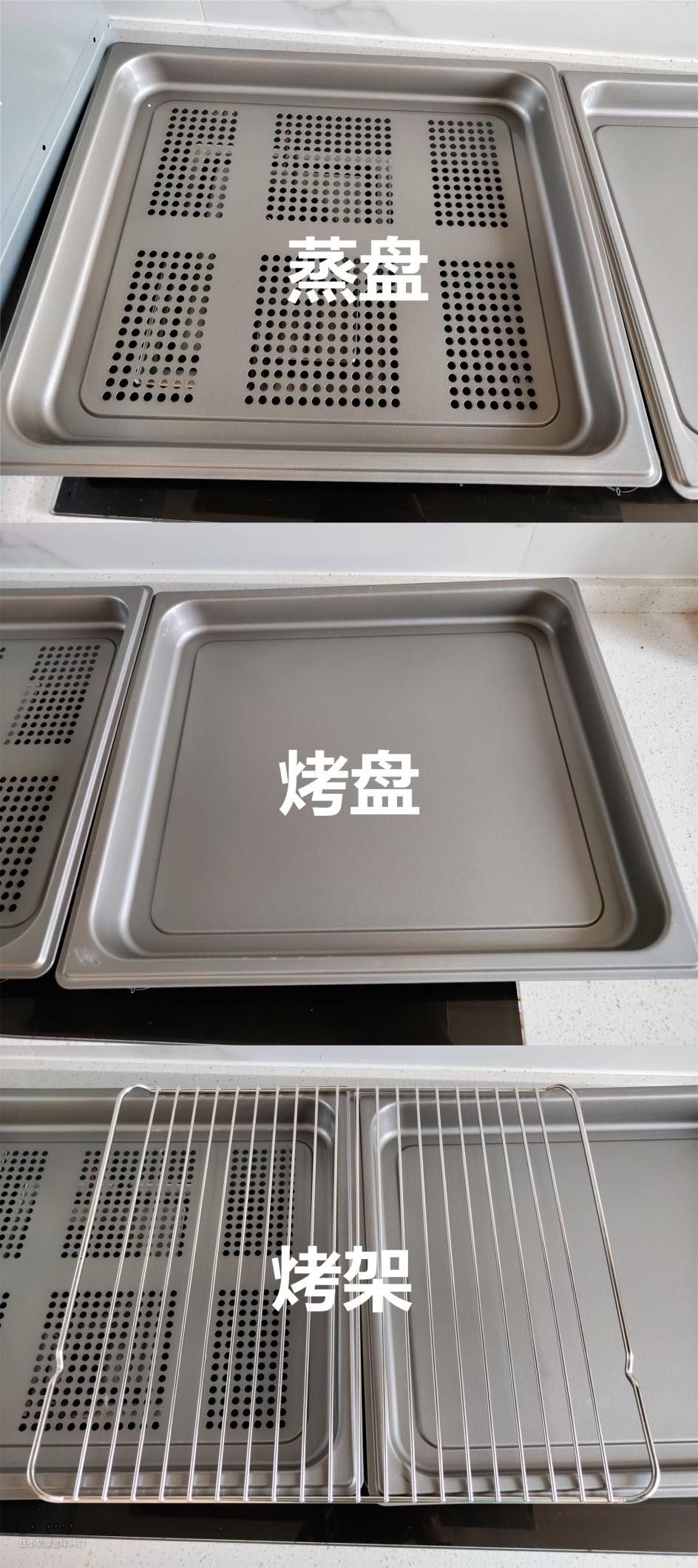 机器附带了一个蒸盘、一个烤盘、一个烤架。