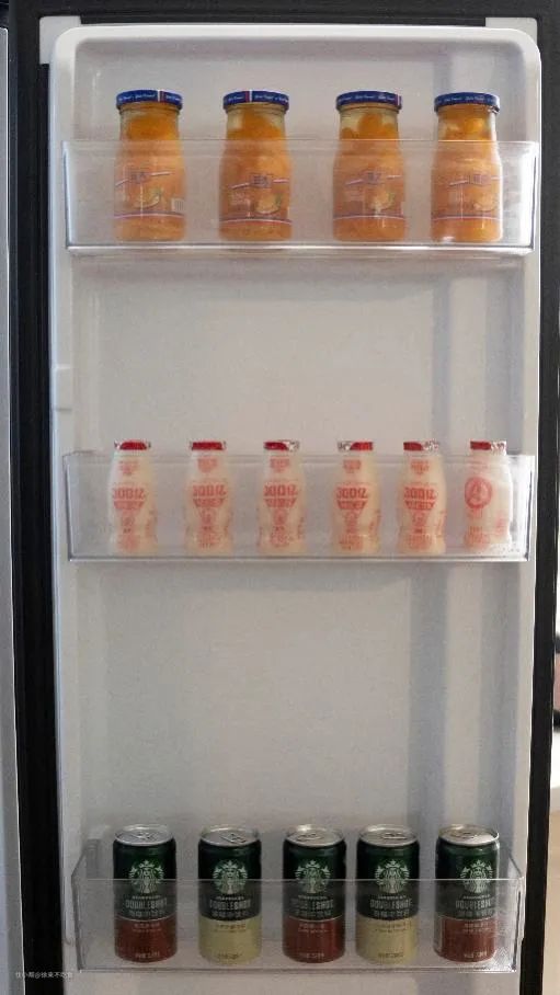 首先是瓶座,设计的位置不仅很巧妙,有着很大的容量,不仅能放下平时所需的牛奶、酱料,还能多放下两瓶冰水方便出去玩的时候喝。