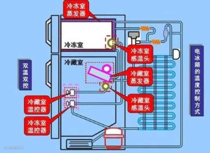 双循环系统:有两个蒸发器,冷冻室和冷藏室分别对应一个蒸发器,能更好地避免食物串味问题;