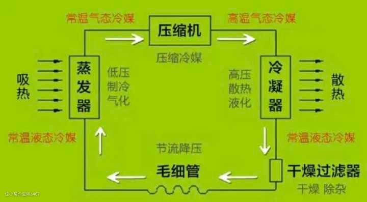一台冰箱之所以有制冷保鲜功能,主要得益于它内部安装的制冷系统,而这个制冷系统由冷凝器、压缩机、干燥过滤器、蒸发器和毛细管等部分组成,各部分都由密封的钢管连接而成,所以这个制冷循环系统其实是相对闭环的。