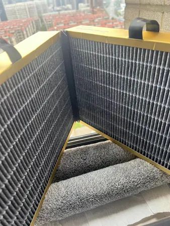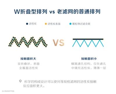 可以给大家看一下Blueair 7340i净化器它的内部滤网结构,它采用的是w折叠型滤网结构,配合改良活性谈,能够让活性炭的功能发挥到最大化。因为吸附面积增大,也就意味着除醛效率变得更高。据商家介绍,它的吸附面积展开之后能够匹敌49个足球场的大小。