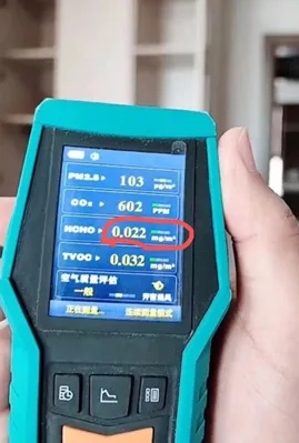 在长达两个小时候之后,再一次进行检测,我们通过甲醛测试仪可以看到,室内甲醛的浓度并没有明显的下降。