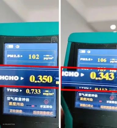 我们可以清楚地看到,在测试之前依旧和前文一样,甲醛超标四倍多。