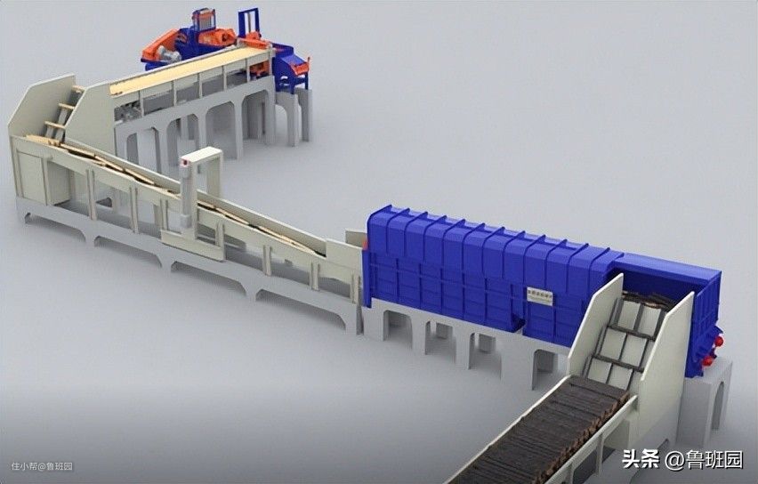 环式长材刨片机生产大片刨花是定向刨花板生产线备料工序的传统配置,首先将原木送入剥皮机进行剥皮,剥完皮的原木通过金属探测器,剔除含有金属的原木,合格的原木进入长材刨片机批次进料器,再逐批送入长材刨片机切割室切削成刨花。