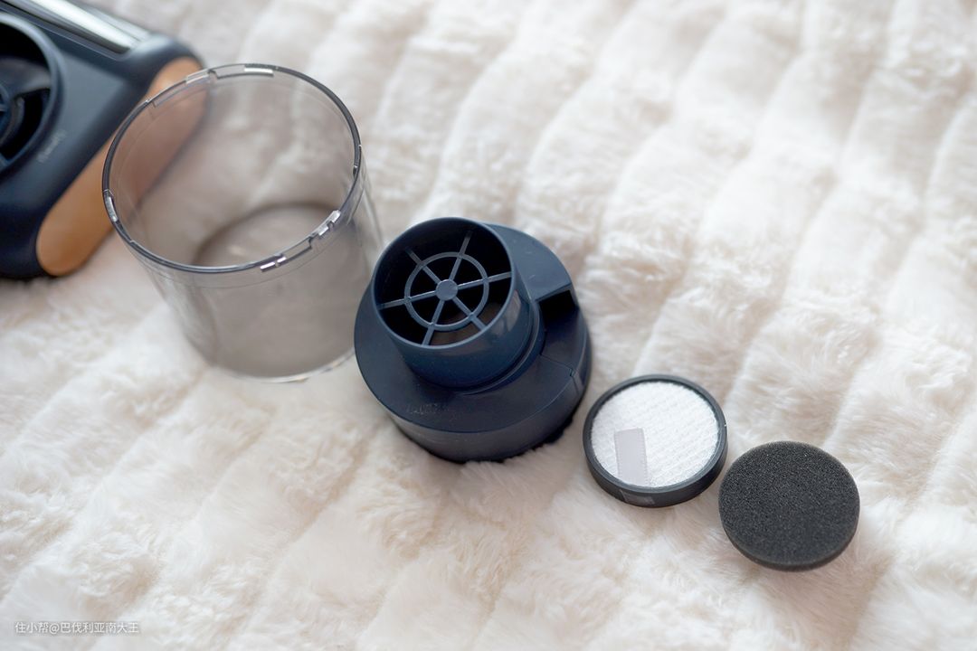 其中过滤杯容量是0.2L,集尘杯容量0.4L,几乎是目前市面最大的尘杯容量,我用它一次就能搞定家里两张床、沙发以及地毯的清洁。两个杯子都是可拆卸水洗的,注意水洗后要完全晾干再使用哦~