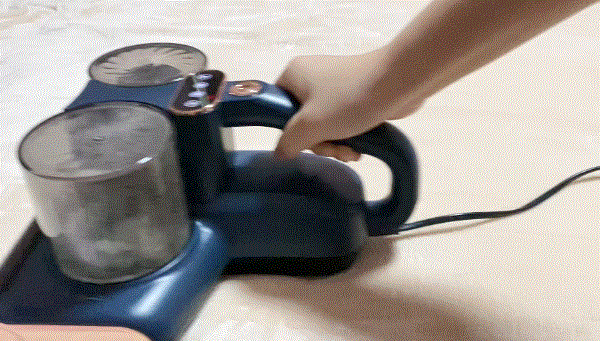 这张动图可以看到蓝宝双杯除螨仪的拍打力度肉眼可见的更强,在这种强深有力的高速拍打下,螨虫及螨虫排泄物都能被拍打起来。