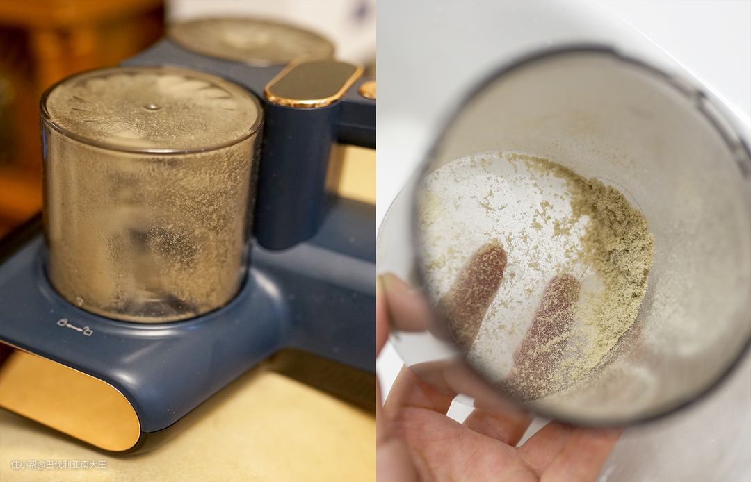 图中是我最终入手的蓝宝双杯除螨仪,左杯储存尘螨、右边负责过滤,灰尘分离效率高达90%。清洁完直接拆卸左杯倒掉就好,也没有从灰尘中掏滤网的动作,大大避免了扬灰。