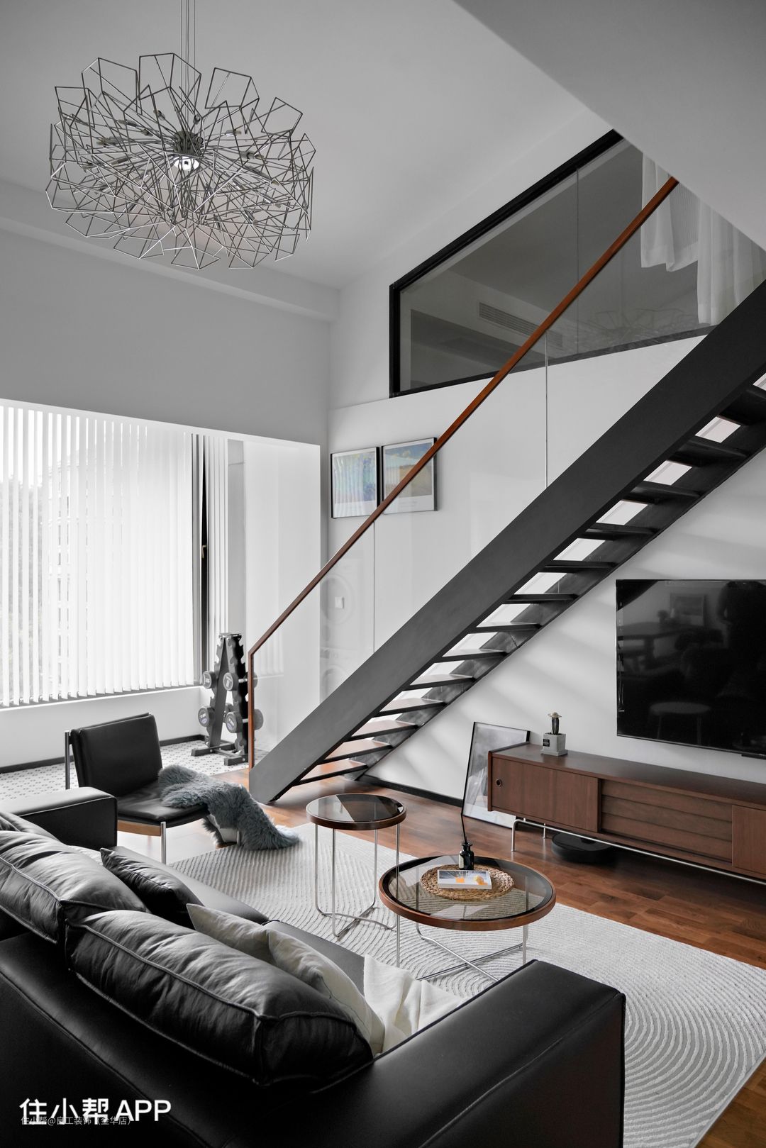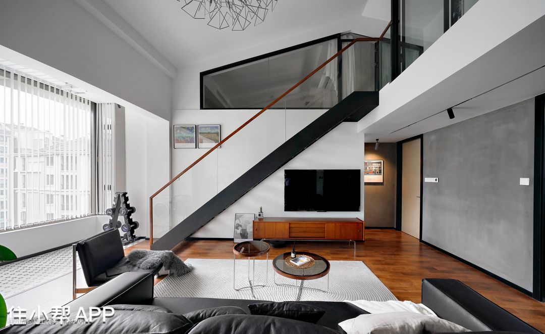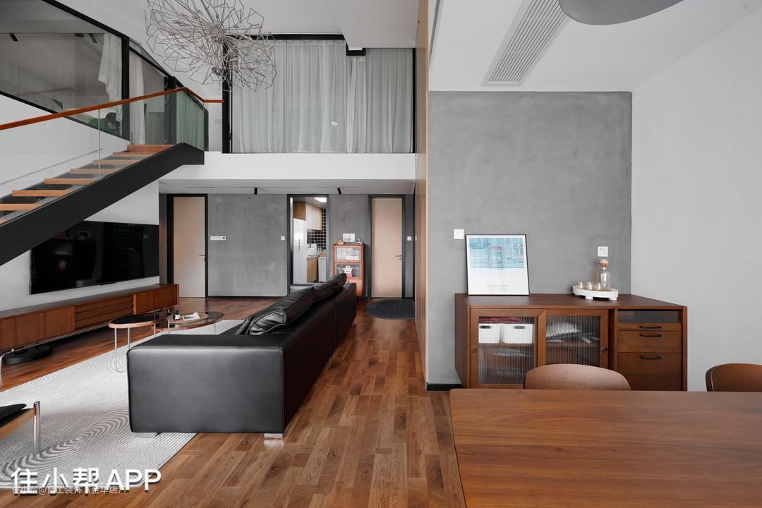 由于工业风对空间感有一定要求,所以设计师特意做了挑空的设计来扩充空间视觉面积,从而可以完美消化工业风。