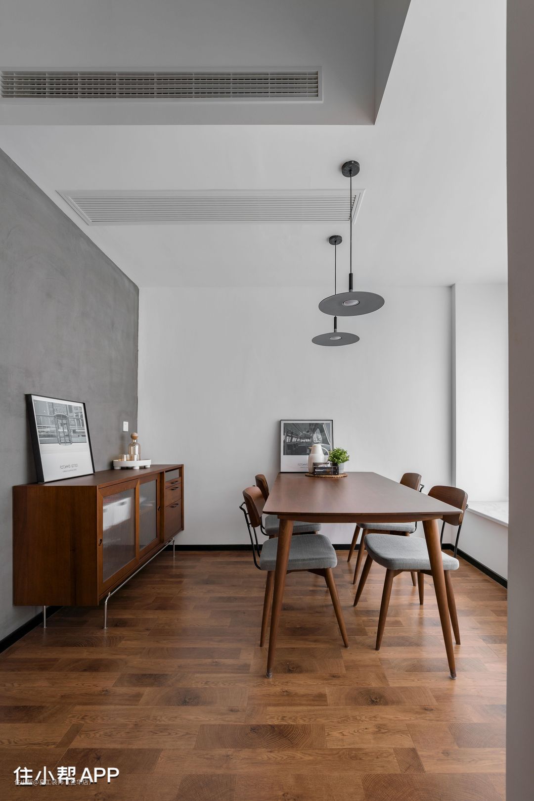 大面积的水泥灰奠定了现代工业风原始感,承载着岁月痕迹的墙面纹理,粗犷中表露天然细腻的空间张力。局部加入原木元素,在沉静与酷感中调和出温润质感。