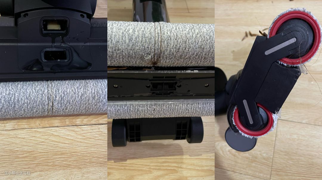 而实际上,追觅的M13缺乏活水清洗,以及只有的固定挤水条,并无法刮干净滚刷上的污水脏物,滚刷不干净,拖地自然会一直脏,就像那种脏拖把一直反复抹地一样。
