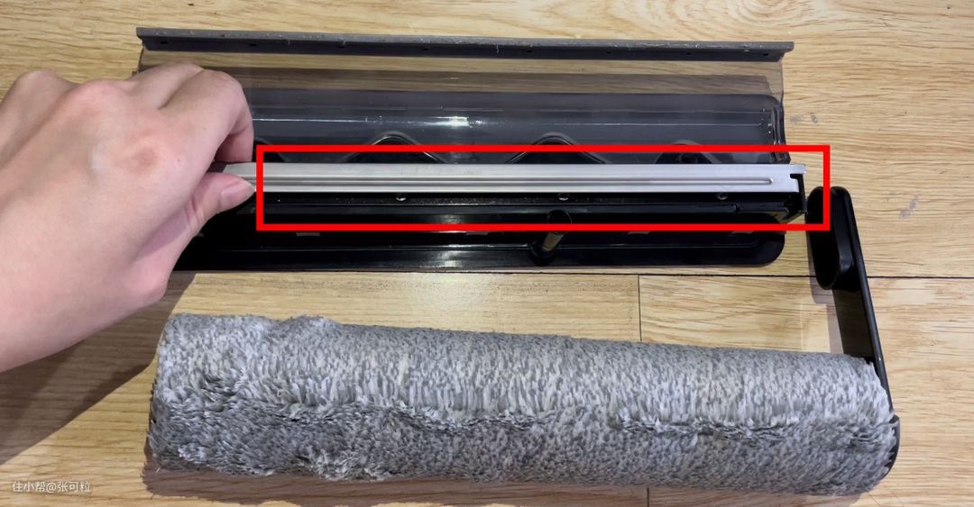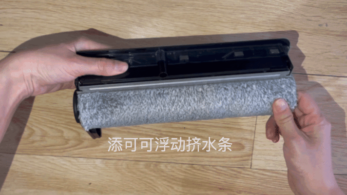 添可3.0采用的是高密型软绒双贴边单滚刷;追觅M13采用的是双贴边双滚刷。 拆掉滚刷,可以看到添可的浮动挤水条。