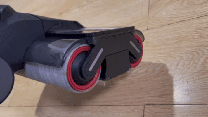 追觅M13:而追觅也是宣称前后双助力的,却推拉得不那么轻松。主要是因为双滚刷向内旋了,如果你要往前推,那么后面的滚刷就会多了阻力,如果你要往后拉,那么前面的滚刷就会阻碍「后拉」的动作,感觉力气都被2个滚刷之间给抵消了。