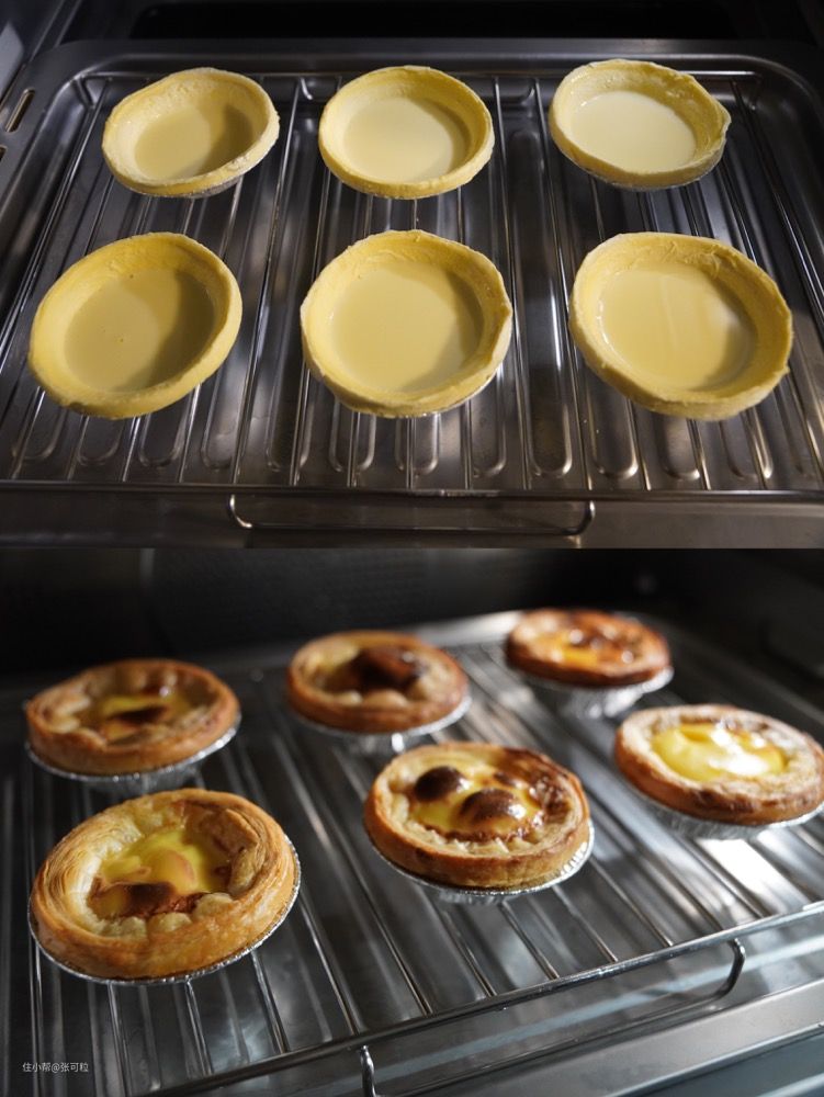 虽然烤猪仔骨和烤蛋挞,都用到了「烤」,但这两种「烤的方式」可是不一样的,蛋挞的烤需要微波+热风烤。 当然它这个是有自动菜单的,只要选择专门的「烤蛋挞」就可以开烤啦,如果喜欢吃焦一点的,可以多烤3~5分钟。