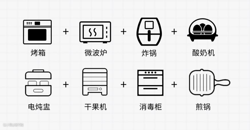 甚至一台相当于8台机器,既是蒸烤箱、微波炉、炸锅,又是酸奶机、电炖盅、干果机、消毒柜、煎锅。 也就是说微波热牛奶、热饭菜、蒸鱼、蒸排骨、蒸虾、烤肉串、烤蛋挞、烤面包、炸鸡、炸薯条、炖汤、做干果、酸奶等等毫无压力,可以解锁N种美食,全家人的口味通通能满足。