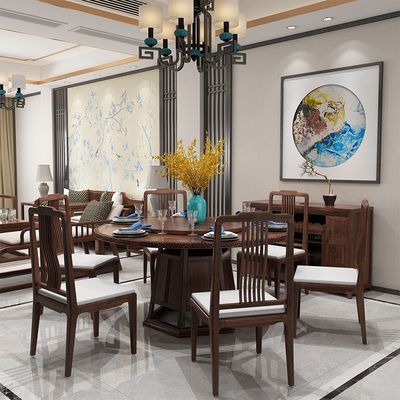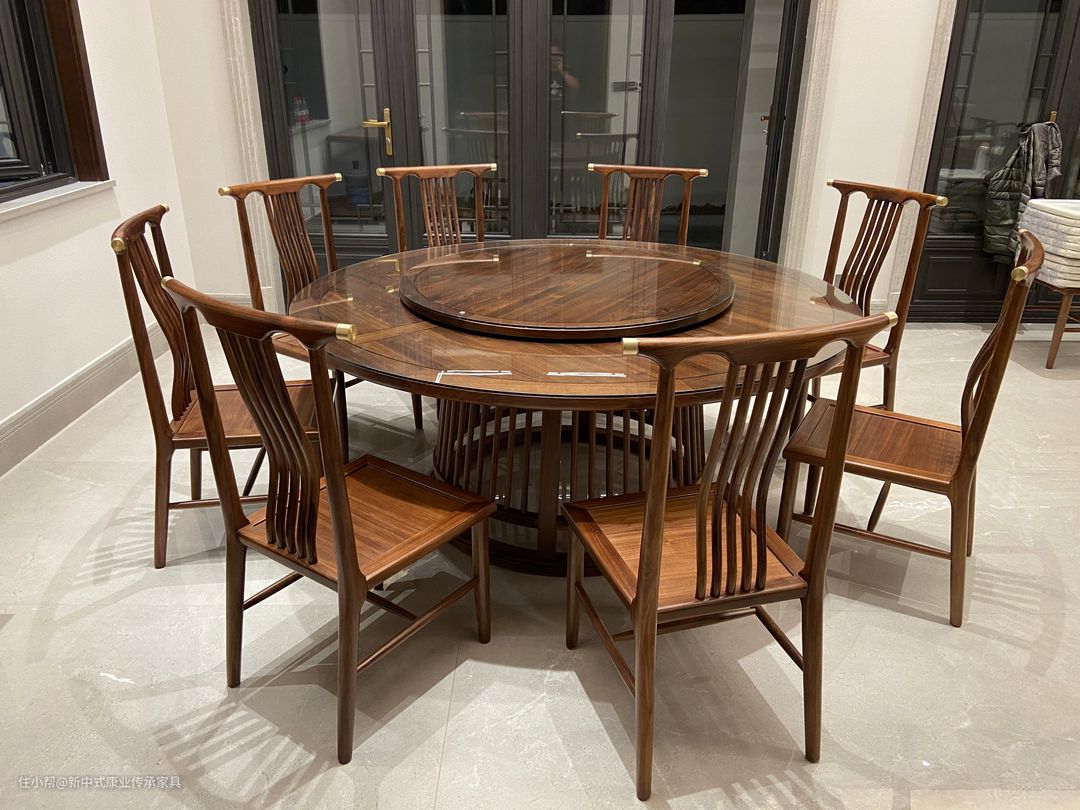 实木旋转餐桌可容纳八人同时进餐,底座部分采用了镂空设计,不仅更加美观,显得餐桌更精巧轻便,还增大了与地面的接触面,使得餐桌稳定性更强,不易侧翻;餐椅背部采用曲线设计,更具动感,还符合人体工学设计,让用餐更加舒适。
