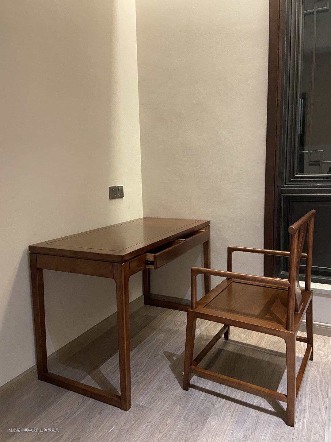 这套桌椅兼具了古典韵味和现代简洁感,家具上没有繁赘的装饰,横平竖直的线条更能展现出家具上的木纹,朴实之中透露出木质的清新自然。