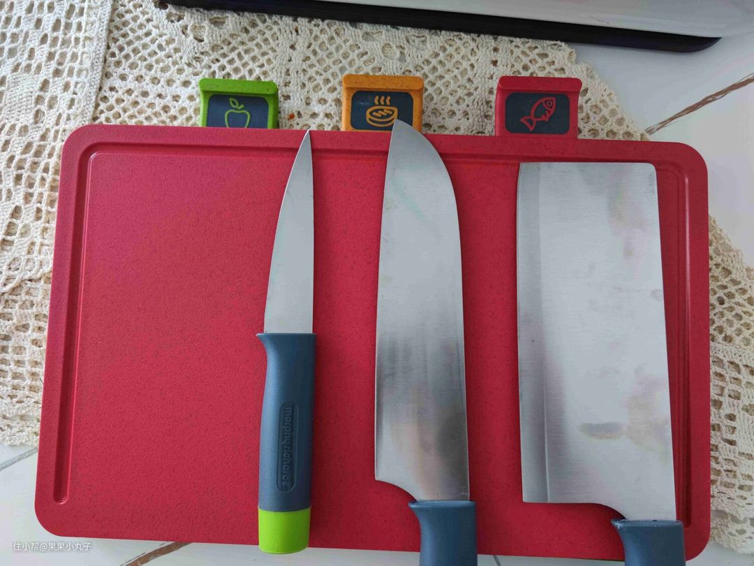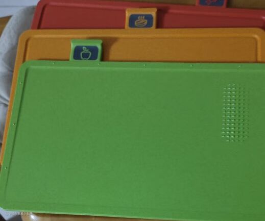 绿色砧板主要是切水果瓜蔬的,在边沿设计了小颗粒带可以对食物进行研磨,设计的初衷应该是主要针对需要做辅食的家庭使用吧。