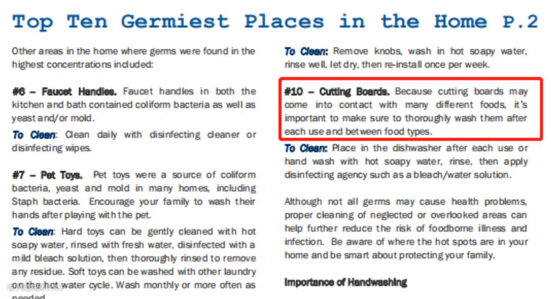 从美国的一项研究表明,砧板是厨房内十大最容易滋生细菌的地方之一。