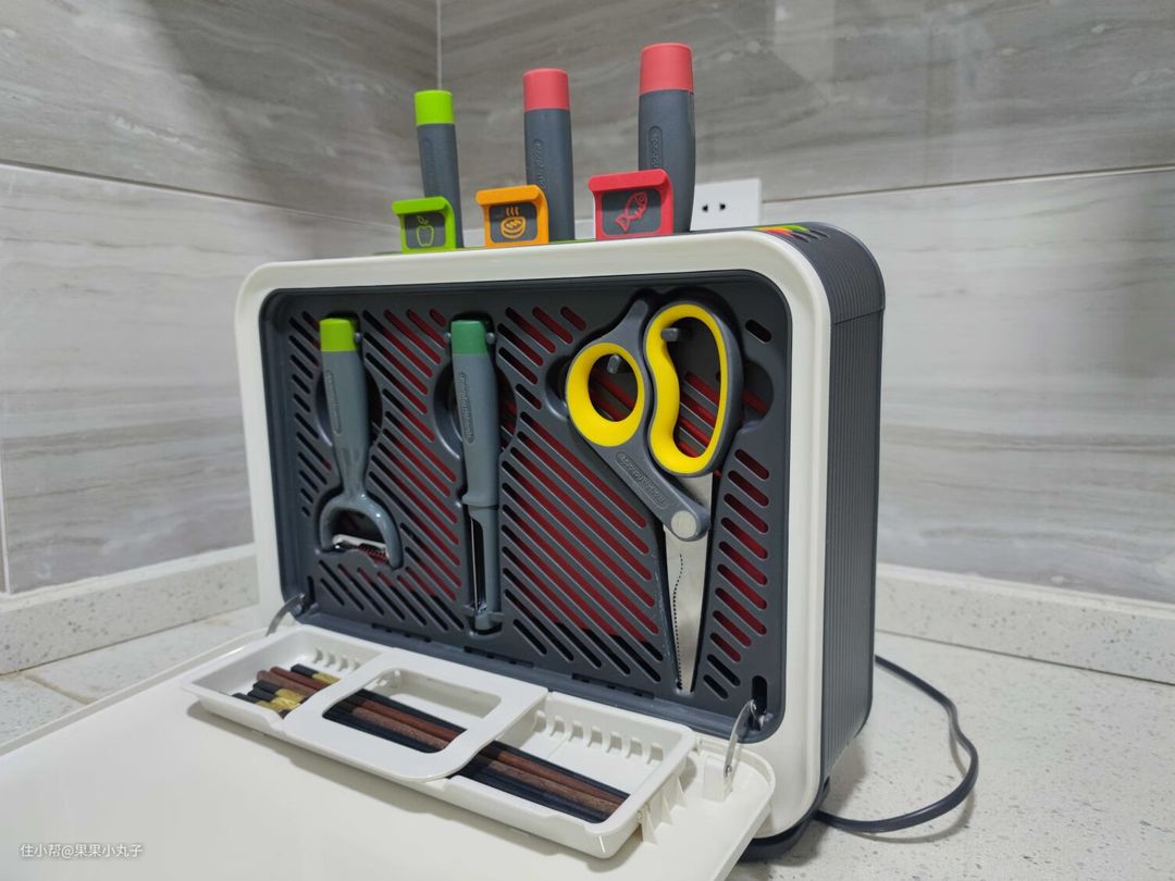 为了解决这一痛点,市面上的出现了用紫外线消毒刀具和砧板的消毒刀架。尤其是对于轻食家庭,消毒刀架就是锦上添花。