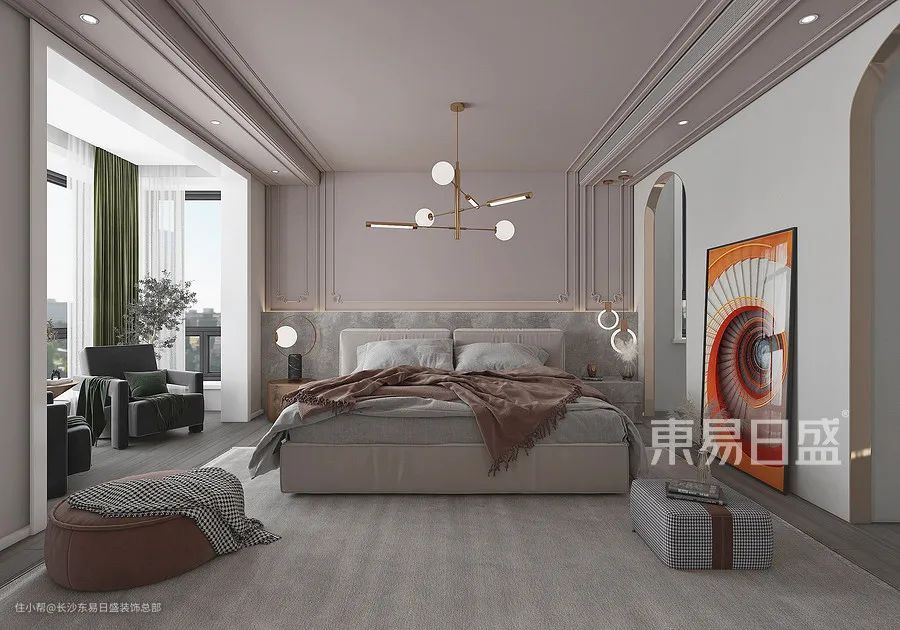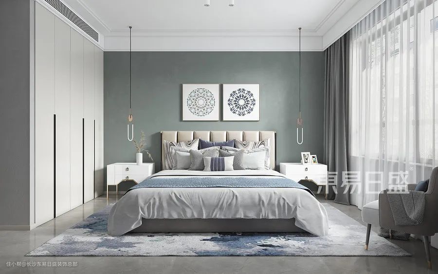 以舒适简约为主,避免过于繁杂的装饰,以浅色系为最佳选择,窗帘选择遮光强度高的,避免早晨被阳光打扰,可以适当增加了艺术感点缀出整个空间的质感,让生活的仪式感满满。
