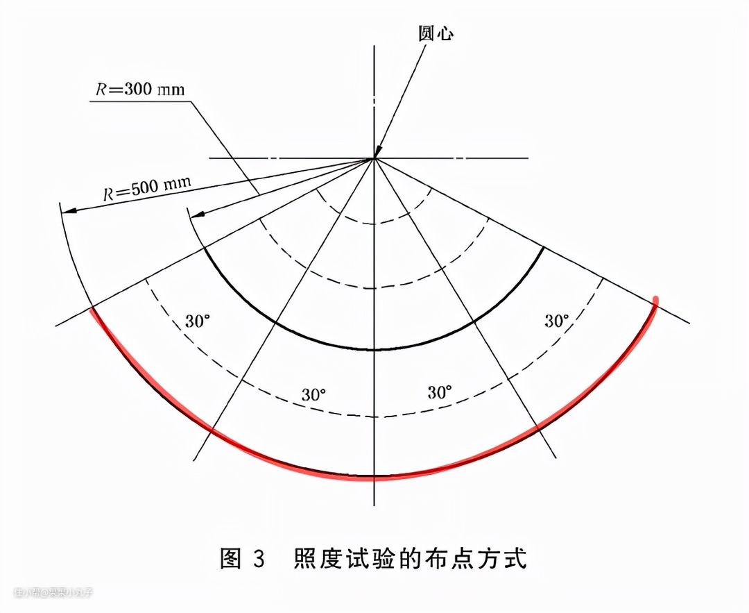 从上述《要求》中的AA级,是以在光源为中心50cm的扇形边缘,亮度要≥250 lx。