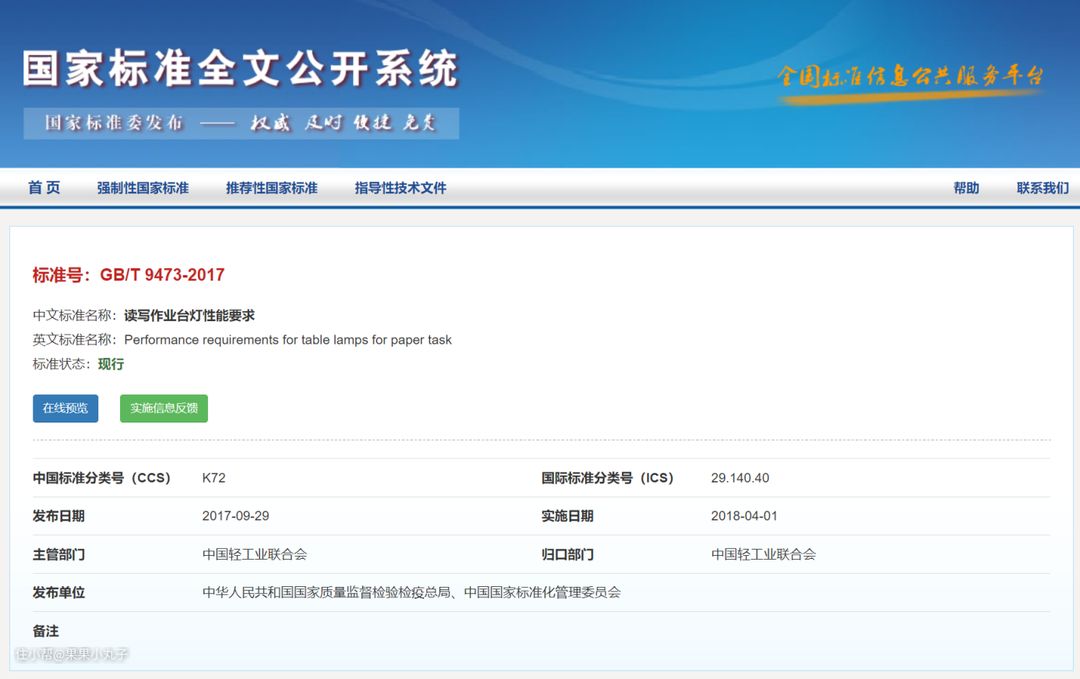 目前各大灯具品牌或者测评机构等,都是以国家推荐性国标GB/T 9473-2017《读写作业台灯性能要求》(下称《要求》)为参照。