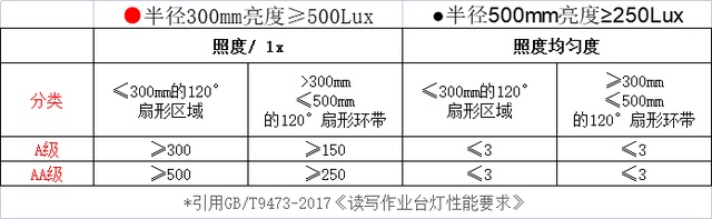 (图源:读写作业台灯性能要求 标准号:GB/T 9473-2017)