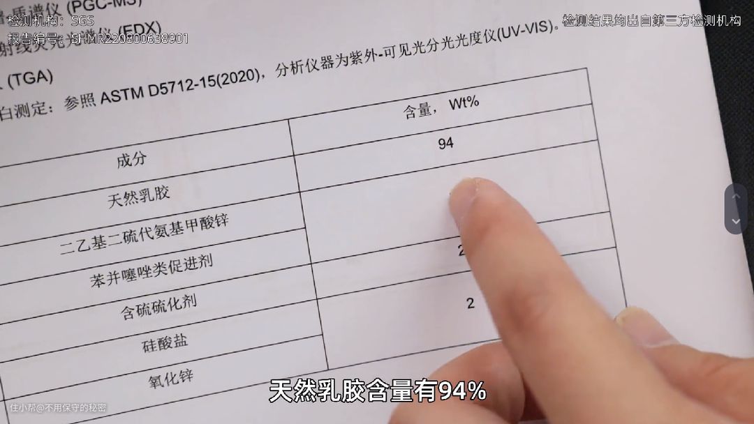 但我看老爸评测用专业仪器测试,这款床垫天然乳胶的含量有94%,我们都知道天然乳胶成本偏贵,所以天然乳胶床垫一般含量只有80%-90%,就算是好的了。而网易严选AB面床垫达到了目前最高94%,可谓是真材实料。