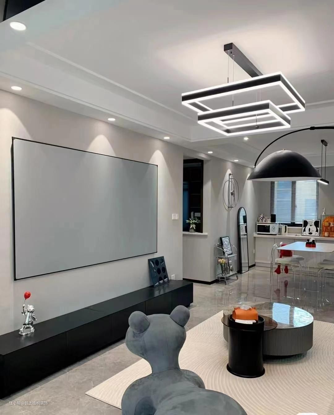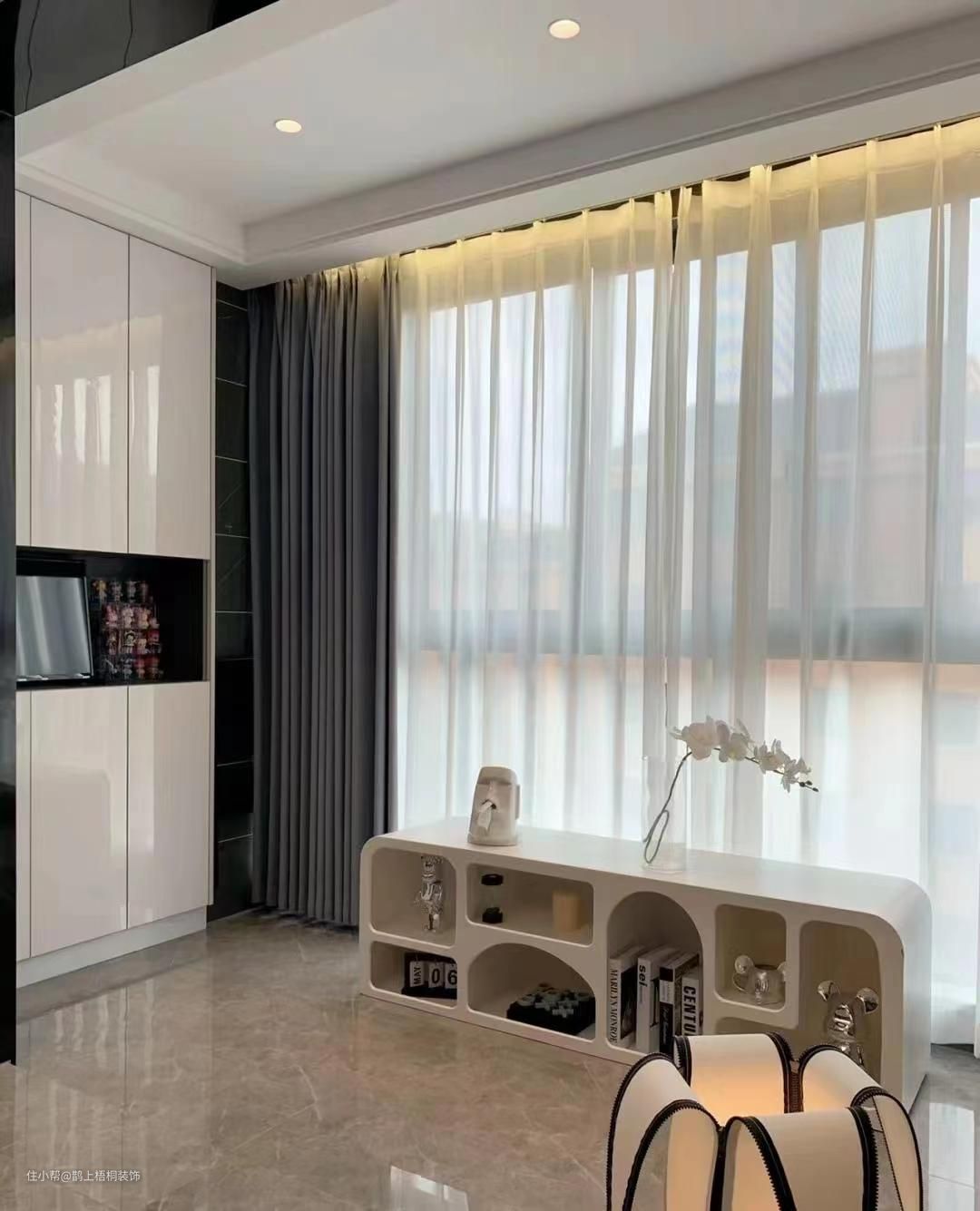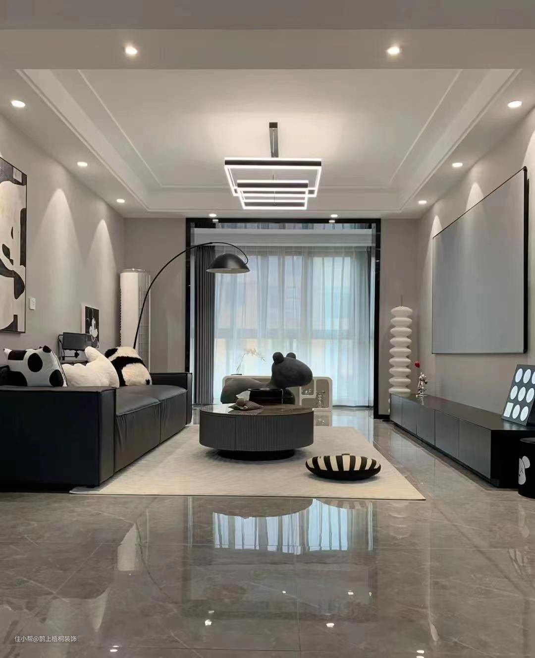 户型整采用的是现代简约风,墙面通铺的是太空漫步灰,简约有高级感,吊顶采用30公分双眼皮吊顶增加空间层次感。地板是800*800灰色大理石瓷砖,拉升空间层次感