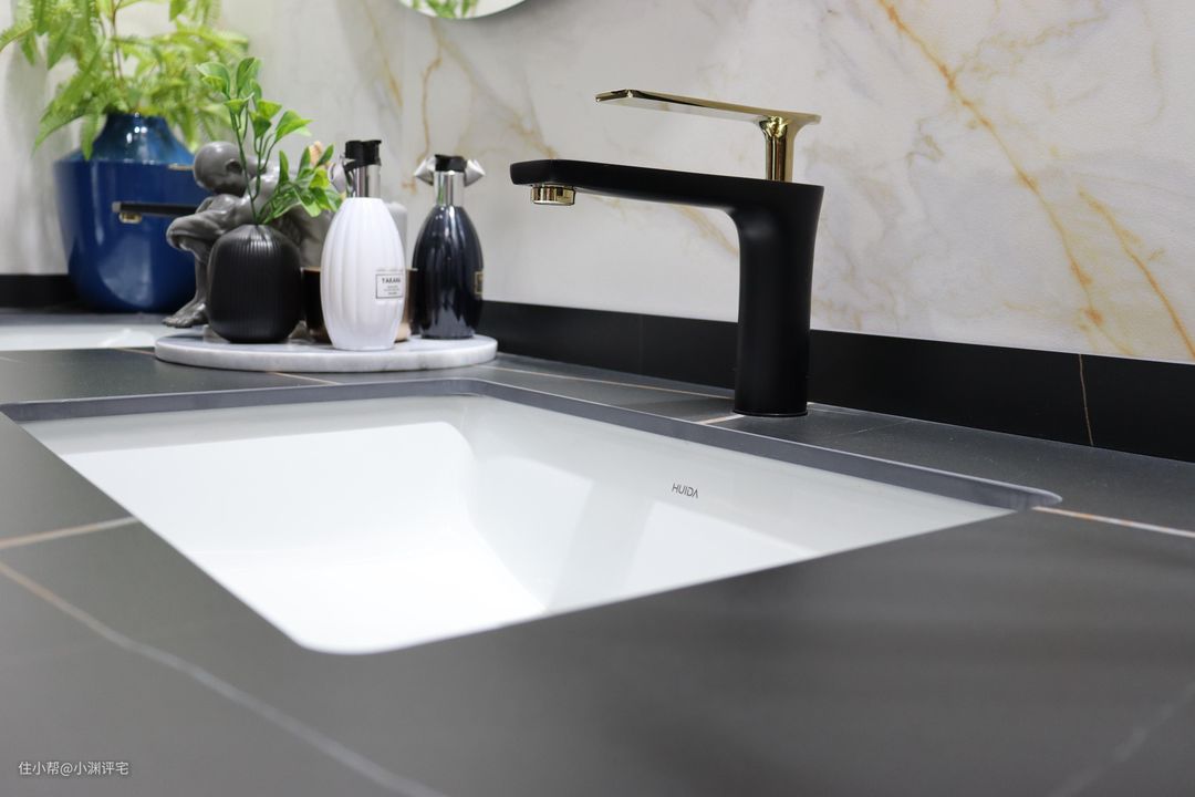 使用效果上,岩板不吸水、更耐磨,自然也会比瓷砖更好用。特别是用在卫生间里的时候,岩板也不会出现像瓷砖一样“向房间外渗水”或者“内部发霉导致异味”等问题。