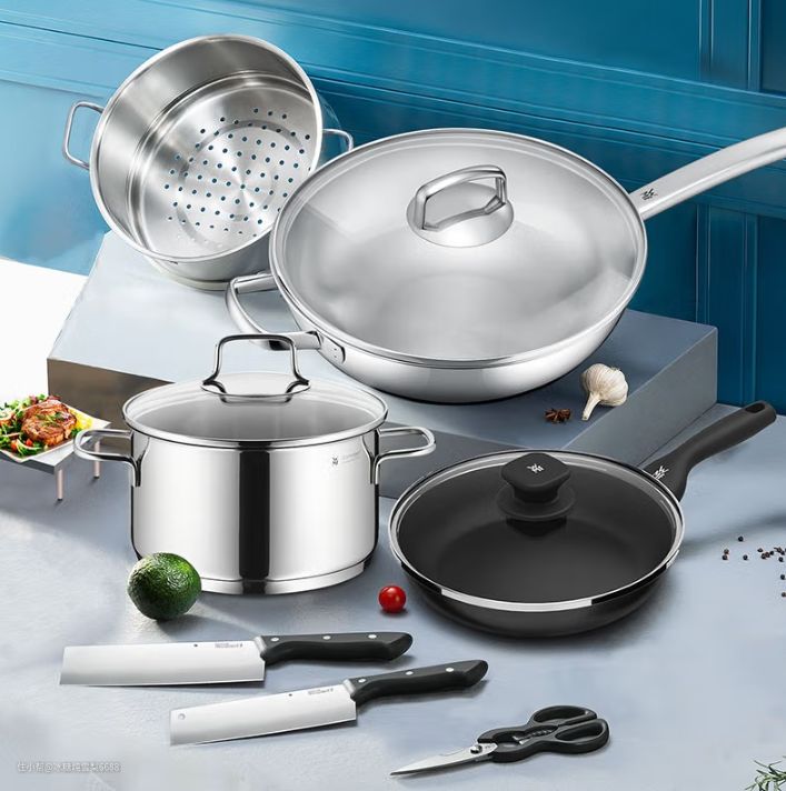 福腾宝,德国高端的锅具品牌,质量可以放心。锅具套装一共7件套,炒锅、汤锅、不粘锅都有。锅体内壁用了不粘涂层,更加通透,做菜的时候不会出现焦糊的状态。汤锅还配蒸笼,可以边煲汤边蒸菜,节省时间。记得在使用时前,用加温的白醋清洗一次锅具,这样会比较好保养,使用寿命更长。这一套锅具给人一种高端上档次的感觉。999元即可入!