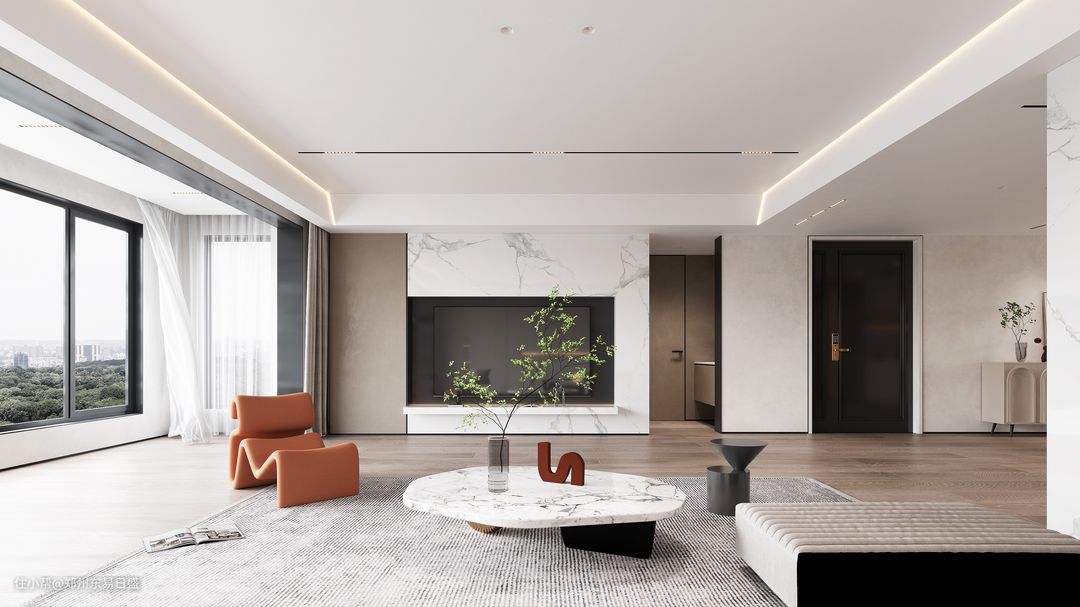 全屋奶白色现代极简风,这是专属于大平层的高级感