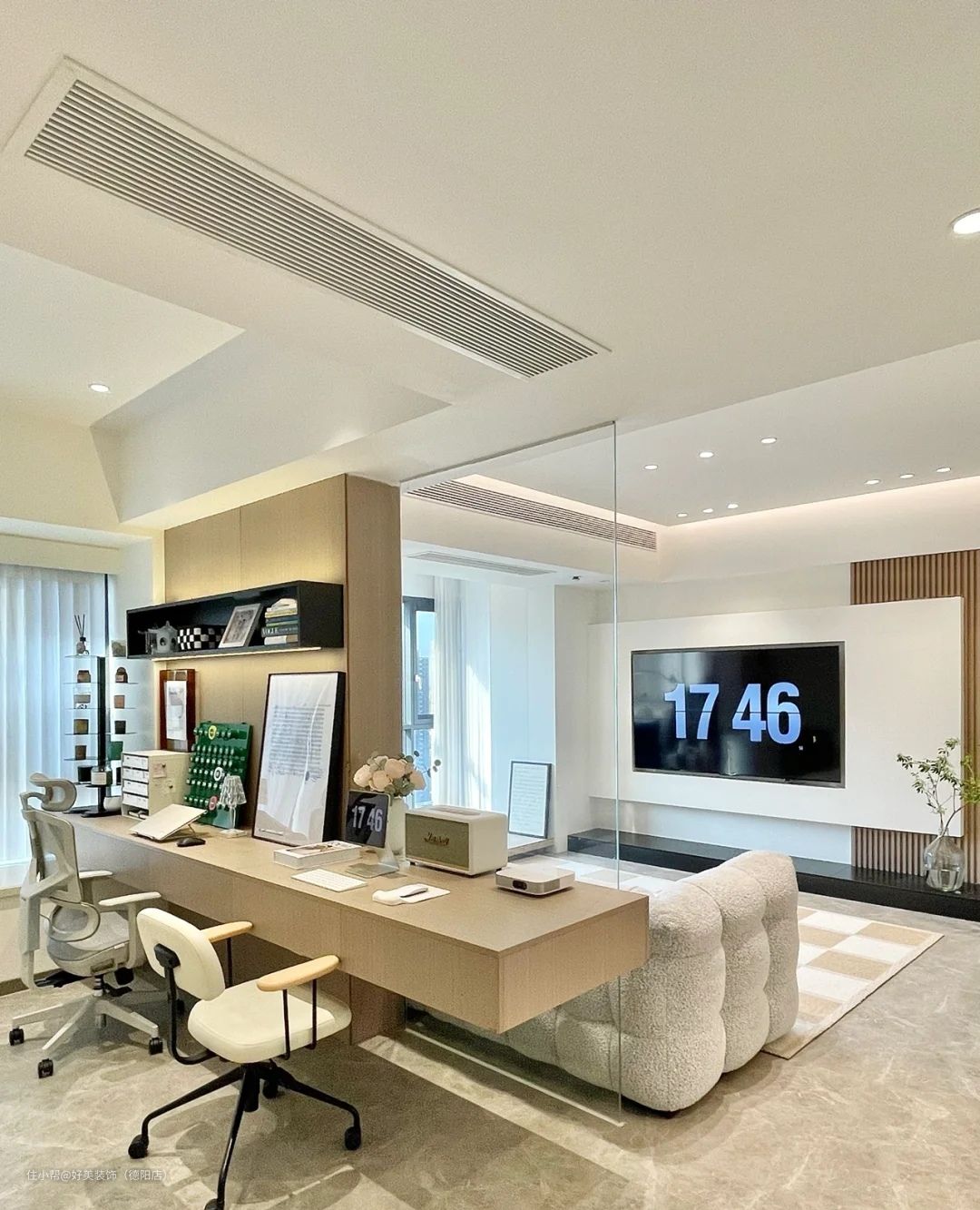 无主灯的设计拉高整个房间的纵深,3500k射灯搭配同色温线性灯,简约又耐看!