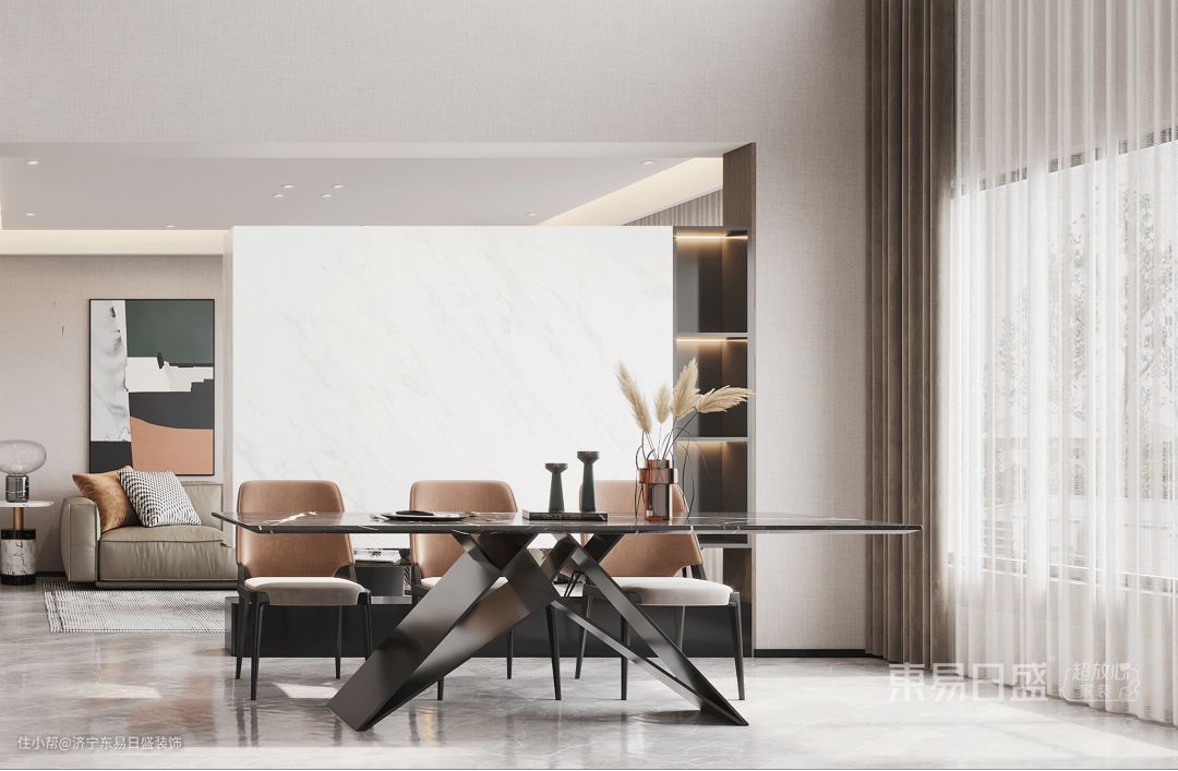 餐厅与客厅整体硬装保持一致的造型,家具也是以现代简约的设计,带来一种华丽精致的用餐仪式感。